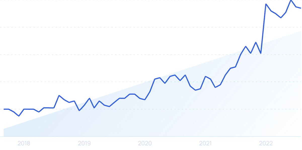 Search volume for “blockchain software development” is up 26% in the past 5 years.